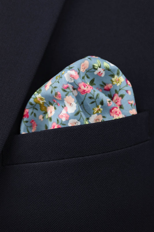 100% Cotton Floral Print Pocket Square - Blue & Pink