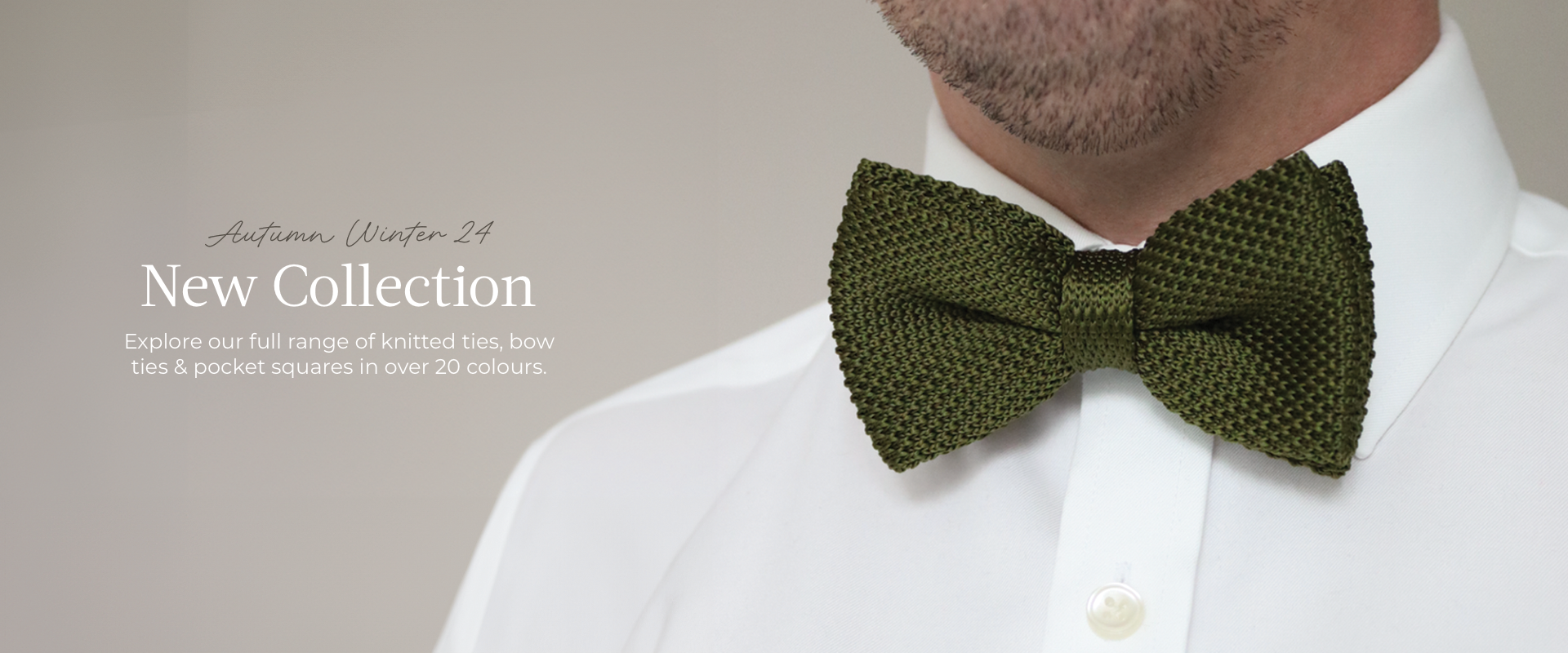 Embrace the season with our new Autumn 2024 collection of knitted ties, featuring rich textures and deep, earthy tones perfect for the crisp fall days ahead.