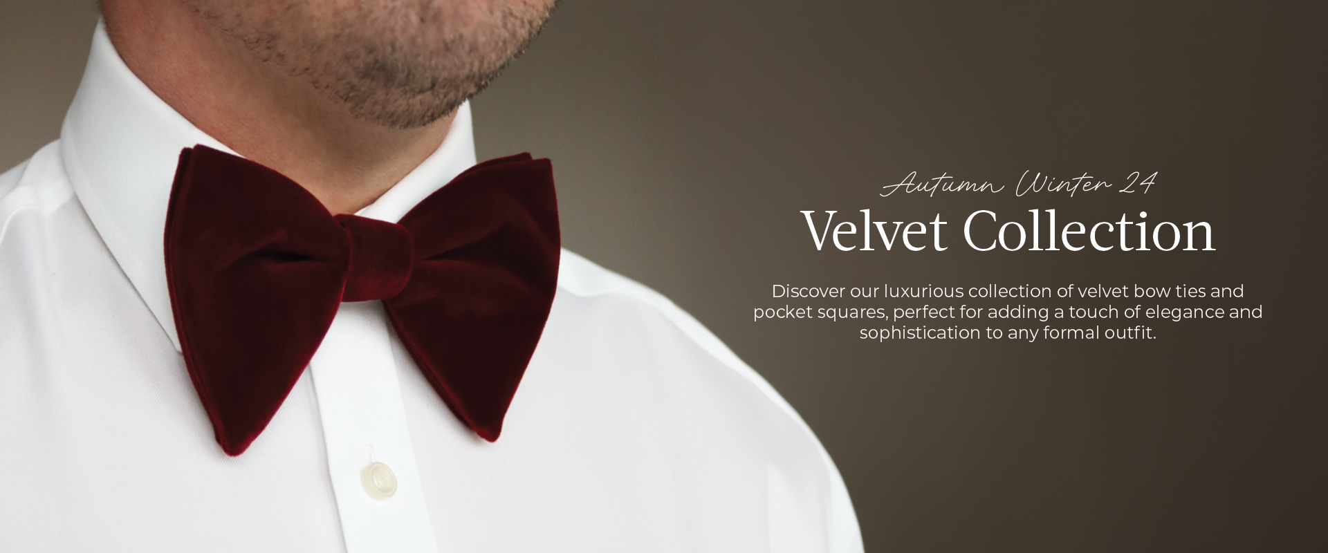 Discover our luxurious collection of velvet bow ties and pocket squares, perfect for adding a touch of elegance and sophistication to any formal outfit.