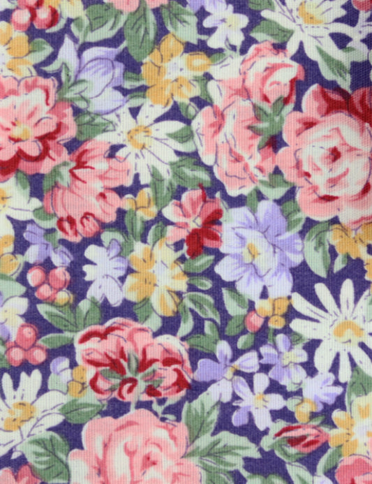 100% Cotton Floral Print Pocket Square - Navy Blue & Purple