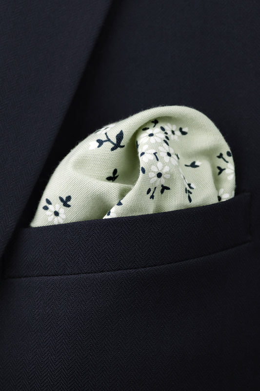 100% Cotton Floral Print Pocket Square - Sage Green
