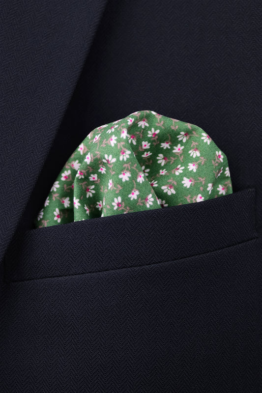 100% Cotton Floral Print Pocket Square - Green
