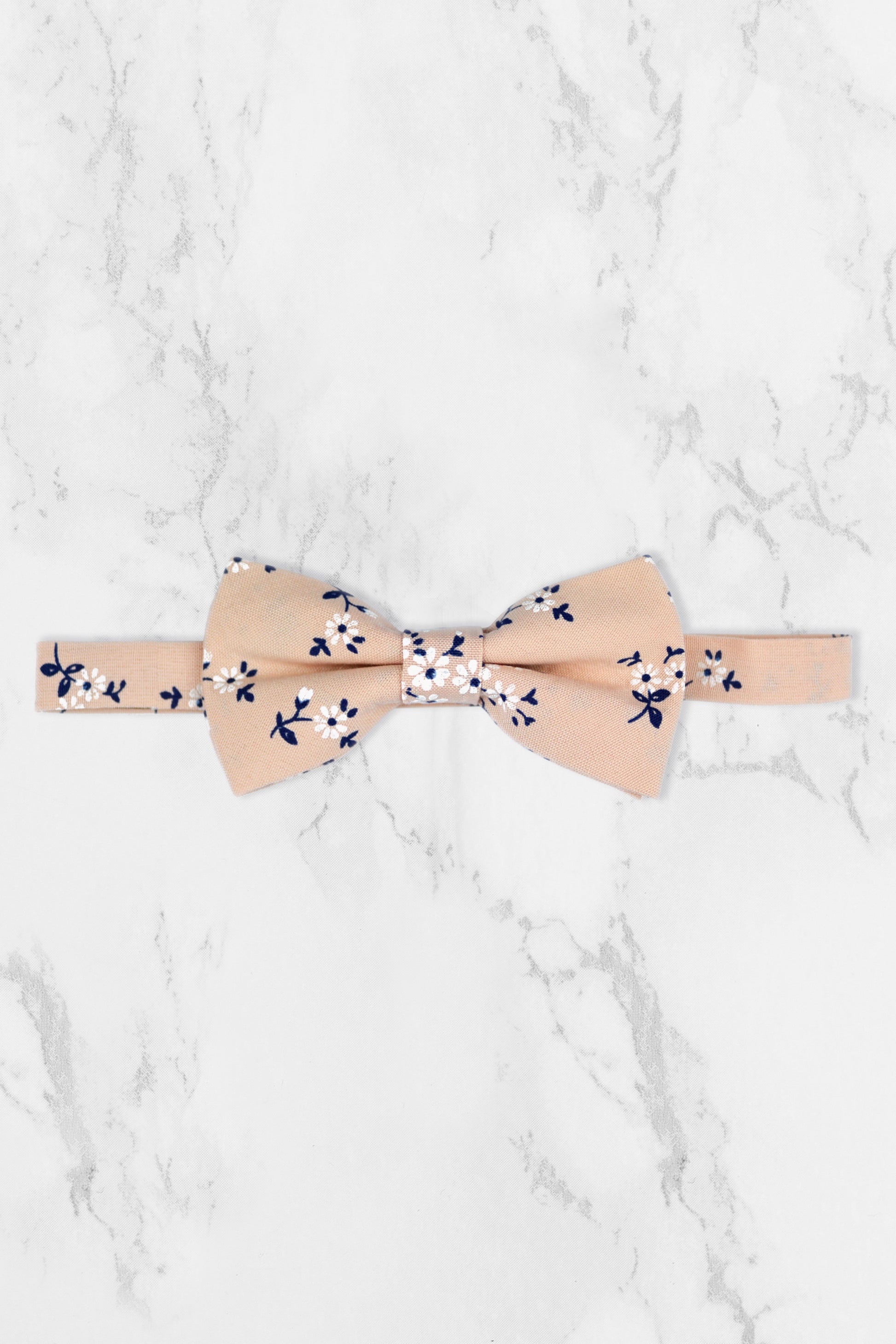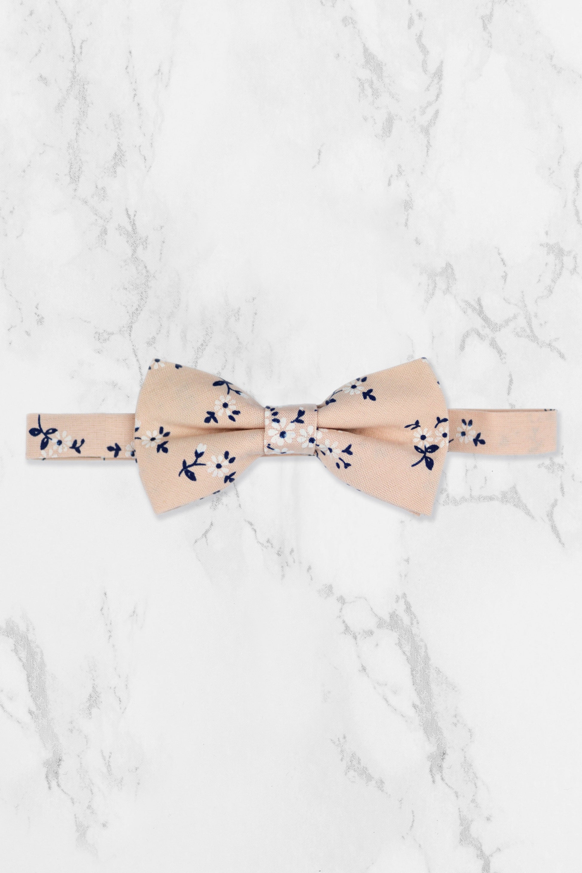 100% Cotton Floral Print Bow Tie - Peach & Navy