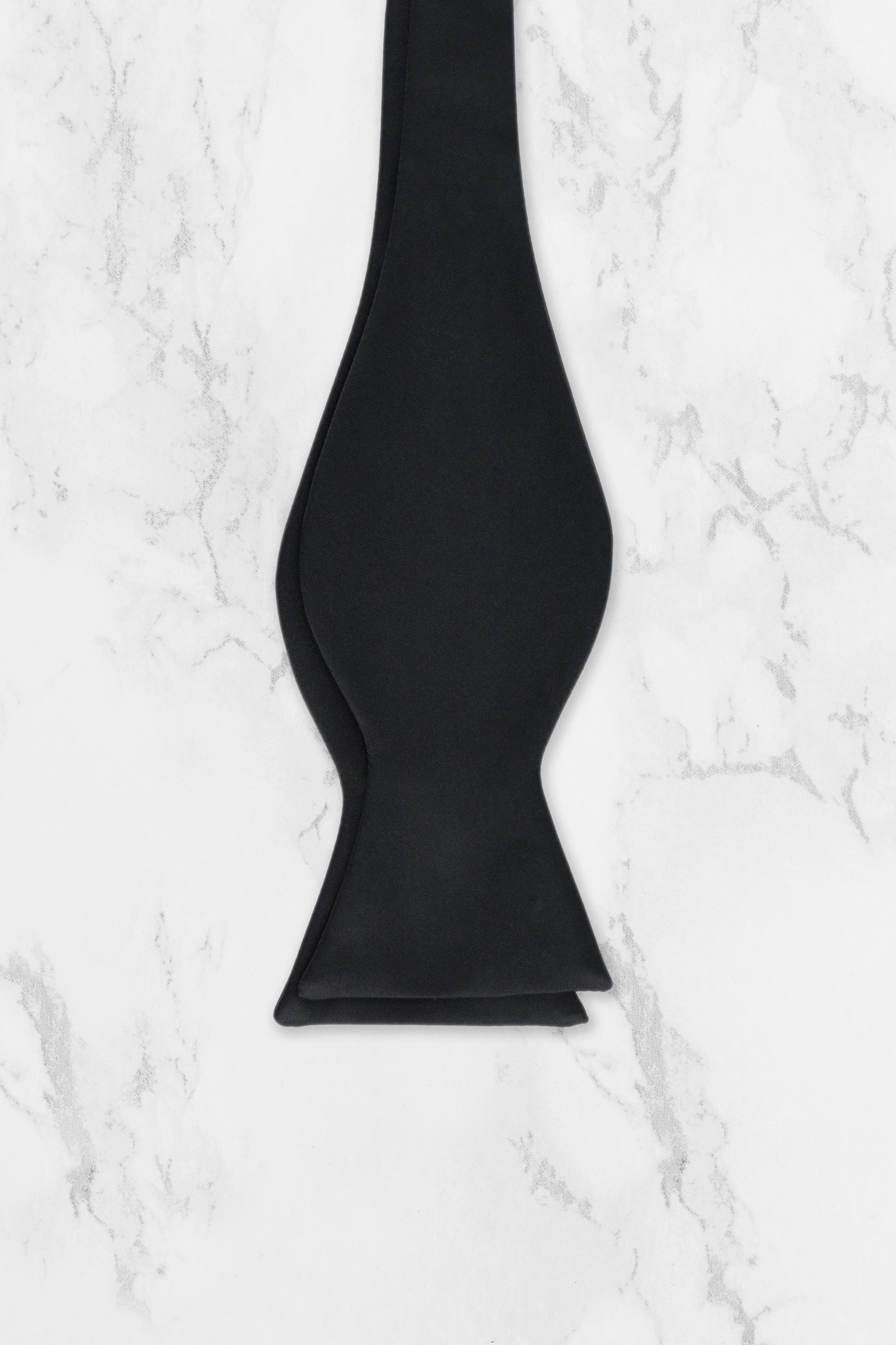 A plain black self-tie bow tie with a beautiful satin finish. It has a luxurious sheen to the fabric and is designed with an adjustable ladder band to fit necks approximately 14" - 20". We pride ourselves on offering luxury ties made from the finest quality fabric. This is an effortless item for a stylish look.
