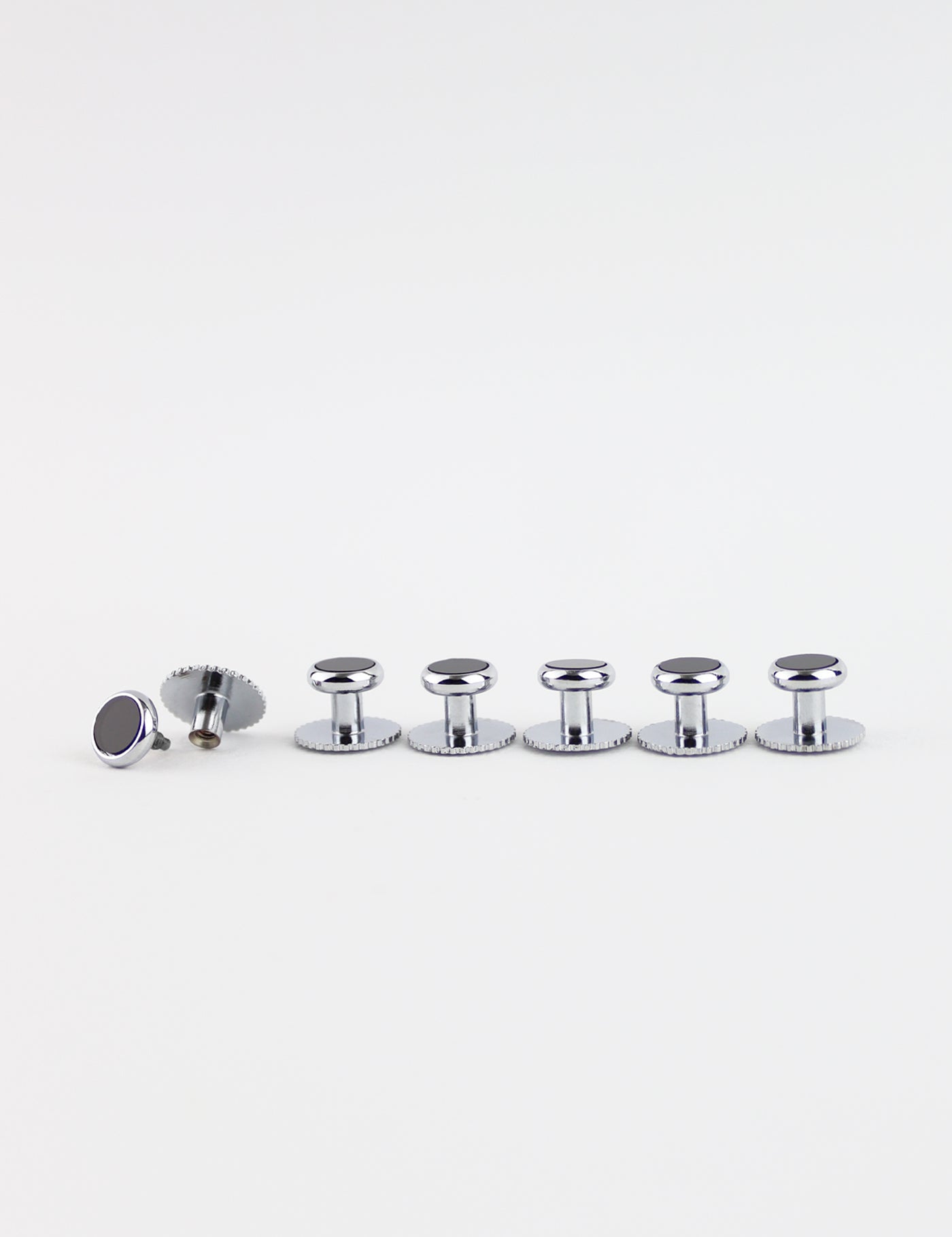 Upgrade your formalwear with this Set of 6 Black and Silver Dress Studs, the perfect finishing touch for any tuxedo or dress shirt. These premium-quality studs are designed to elevate your formal look, adding a refined and polished detail to your outfit.