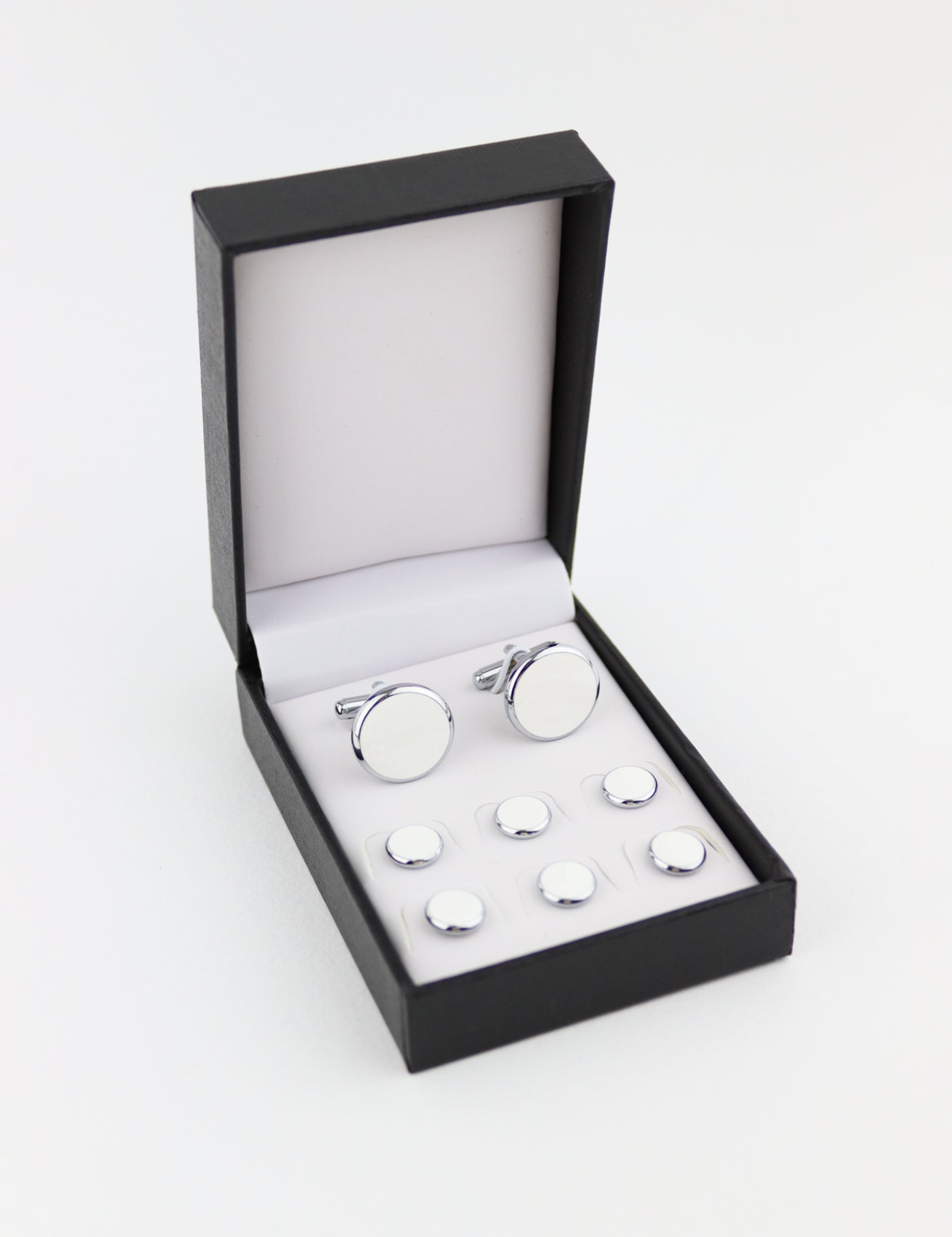 Add the finishing touch to your outfit with our set of 6 dress studs and 2 cufflinks. These minimalistic cufflinks make the perfect inexpensive gift. Made from the highest quality and guaranteed to be the perfect touch to your dress shirt for that prom or wedding.